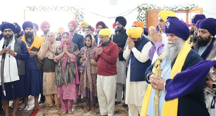 Sri Anandpur Sahib News:ਪੰਜਾਬ ਦੇ ਮੁੱਖ ਮੰਤਰੀ ਭਗਵੰਤ ਸਿੰਘ ਮਾਨ ਅਤੇ ‘ਆਪ’ ਦੇ ਕੌਮੀ ਕਨਵੀਨਰ ਅਰਵਿੰਦ ਕੇਜਰੀਵਾਲ ਨੇ ਮੰਗਲਵਾਰ ਨੂੰ ਸੰਗਤ ਨਾਲ ਮਿਲ ਕੇ ਸੂਬੇ ਦੀ ਤਰੱਕੀ ਅਤੇ ਪੰਜਾਬੀਆਂ ਦੀ ਖੁਸ਼ਹਾਲੀ ਲਈ ਅਰਦਾਸ ਕੀਤੀ।ਦੋਵਾਂ ਆਗੂਆਂ ਨੇ ਗੁਰਦੁਆਰਾ ਬਾਬਾ ਬੁੱਢਾ ਦਲ ਛਾਉਣੀ ਵਿਖੇ ਸ੍ਰੀ ਗੁਰੂ ਤੇਗ ਬਹਾਦਰ ਜੀ ਅਤੇ ਮਹਾਨ ਸਿੱਖ ਸ਼ਹੀਦਾਂ ਭਾਈ ਮਤੀ ਦਾਸ ਜੀ, ਭਾਈ ਸਤੀ ਦਾਸ ਜੀ ਅਤੇ ਭਾਈ ਦਿਆਲਾ ਜੀ ਦੇ 350ਵੇਂ ਸ਼ਹੀਦੀ ਦਿਹਾੜੇ ਨੂੰ ਸਮਰਪਿਤ ਸ੍ਰੀ ਅਖੰਡ ਪਾਠ ਸਾਹਿਬ ਜੀ ਦੇ ਭੋਗ ਉਪਰੰਤ ਕੀਤੀ ਅਰਦਾਸ ਵਿੱਚ ਭਾਗ ਲਿਆ। ਉਹ ਗੁਰੂ ਜੀ ਦਾ ਧੰਨਵਾਦ ਕਰਨ ਲਈ ਵੱਡੀ ਸੰਗਤ ਵਿੱਚ ਸ਼ਾਮਲ ਹੋਏ ਅਤੇ ਸਾਰਿਆਂ ਦੀ ਭਲਾਈ ਲਈ ਅਰਦਾਸ ਕੀਤੀ। ਦੋਵਾਂ ਆਗੂਆਂ ਨੇ ਕਿਹਾ ਕਿ ਸ੍ਰੀ ਗੁਰੂ ਤੇਗ ਬਹਾਦਰ ਜੀ ਦੇ 350ਵੇਂ ਸ਼ਹੀਦੀ ਪੁਰਬ ਨੂੰ ਮਨਾਉਣ ਲਈ ਕਰਵਾਏ ਜਾ ਰਹੇ ਸਮਾਗਮਾਂ ਦੌਰਾਨ ਸੇਵਾ ਕਰਨ ਦਾ ਮੌਕਾ ਮਿਲਣਾ ਉਨ੍ਹਾਂ ਲਈ ਬਹੁਤ ਮਾਣ ਵਾਲੀ ਗੱਲ ਹੈ।