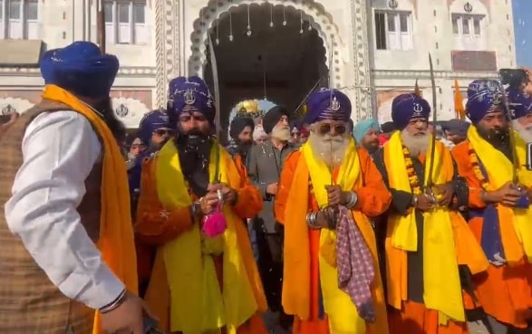 Jammu/Pathankot News:ਨੌਵੇਂ ਪਾਤਸ਼ਾਹ ਸਾਹਿਬ ਸ੍ਰੀ ਗੁਰੂ ਤੇਗ਼ ਬਹਾਦਰ ਜੀ ਦੇ 350ਵੇਂ ਸ਼ਹੀਦੀ ਦਿਹਾੜੇ ਸਬੰਧੀ ਸ੍ਰੀਨਗਰ ਤੋਂ ਆਰੰਭ ਹੋਏ ਨਗਰ ਕੀਰਤਨ ਨੂੰ ਜੰਮੂ ਦੀ ਸੰਗਤ ਵਲੋਂ ਖ਼ਾਲਸਾਈ ਜਾਹੋ-ਜਲਾਲ ਨਾਲ ਅਗਲੇ ਪੜਾਅ ਪਠਾਨਕੋਟ ਲਈ ਰਵਾਨਾ ਕੀਤਾ ਗਿਆ। ਸੰਗਤਾਂ ਨੇ ਨਗਰ ਕੀਰਤਨ ਦੇ ਬੀਤੀ ਰਾਤ ਸਵਾਗਤ ਸਮੇਂ ਅਤੇ ਅੱਜ ਰਵਾਨਗੀ ਸਮੇਂ ਕਈ-ਕਈ ਕਿਲੋਮੀਟਰ ਤੱਕ ਨਗਰ ਕੀਰਤਨ ਨਾਲ ਪੈਦਲ ਚੱਲ ਕੇ ਸ਼ਹਿਰ ਨੂੰ ਅਧਿਆਤਮਕ ਰੰਗਤ ਦੇ ਦਿੱਤੀ।ਜੰਮੂ ਦੇ ਚਾਂਦ ਨਗਰ ਸਥਿਤ ਗੁਰਦੁਆਰਾ ਸ੍ਰੀ ਗੁਰੂ ਨਾਨਕ ਦੇਵ ਜੀ ਵਿਖੇ ਨਗਰ ਕੀਰਤਨ ਲਈ ਠਹਿਰਾਅ ਦਾ ਪ੍ਰਬੰਧ ਕੀਤਾ ਗਿਆ।ਨਗਰ ਕੀਰਤਨ ਦੀ ਜੰਮੂ ਤੋਂ ਰਵਾਨਗੀ ਦੌਰਾਨ ਨੌਜਵਾਨਾਂ ਨੇ ਗੱਤਕੇਬਾਜ਼ੀ ਦੇ ਜ਼ੌਹਰ ਵਿਖਾਏ ਅਤੇ ਸਥਾਨਕ ਸੰਗਤ ਵਲੋਂ ਸ੍ਰੀ ਗੁਰੂ ਗ੍ਰੰਥ ਸਾਹਿਬ ਜੀ ਉਪਰ ਫੁੱਲਾਂ ਦੀ ਵਰਖਾ ਕੀਤੀ ਗਈ। ਇਸ ਦੌਰਾਨ ਜੰਮੂ ਤੋਂ ਸੰਗਤ ਦਾ ਵੱਡਾ ਕਾਫ਼ਲਾ ਨਗਰ ਕੀਰਤਨ ਨਾਲ ਸ੍ਰੀ ਅਨੰਦਪੁਰ ਸਾਹਿਬ ਲਈ ਰਵਾਨਾ ਹੋਇਆ।