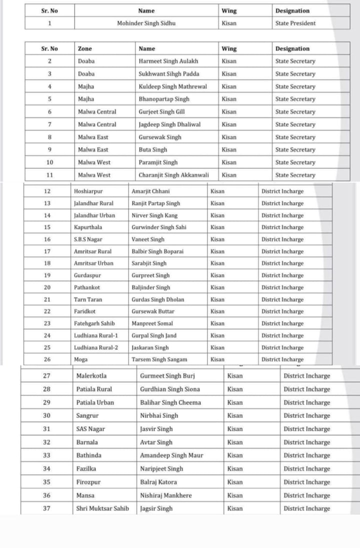 Punjab News: ਆਮ ਆਦਮੀ ਪਾਰਟੀ ਵੱਲੋਂ ਆਪਣੇ ਜਥੇਬੰਦਕ ਢਾਂਚੇ ਨੂੰ ਮਜਬੂਤ ਕਰਦਿਆਂ ਹੁਣ ਕਿਸਾਨ ਵਿੰਗ ਪੰਜਾਬ ਦਾ ਐਲਾਨ ਕੀਤਾ ਗਿਆ ਹੈ। ਪਾਰਟੀ ਦੇ ਸੂਬਾਈ ਪ੍ਰਧਾਨ ਅਮਨ ਅਰੋੜਾ ਅਤੇ ਪੰਜਾਬ ਮਾਮਲਿਆਂ ਦੇ ਇੰਚਾਰਜ ਮਨੀਸ਼ ਸਸੋਦੀਆ ਦੇ ਦਸਤਕ ਤਾਂ ਹੇਠ ਜਾਰੀ ਇਸ ਵਿੰਗ ਦੇ ਸੂਬਾ ਪ੍ਰਧਾਨ ਦੀ ਜਿੰਮੇਵਾਰੀ ਮਹਿੰਦਰ ਸਿੰਘ ਸਿੱਧੂ (ਪਿੰਡ ਸ਼ੇਰੋਂ, ਹਲਕਾ ਸੁਨਾਮ ਊਧਮ ਸਿੰਘ ਵਾਲਾ ) ਨੂੰ ਸੌਂਪੀ ਗਈ ਹੈ। ਇਸ ਦੇ ਨਾਲ ਹੀ ਸੂਬਾ ਸਕੱਤਰਾਂ ਅਤੇ ਜ਼ਿਲ੍ਹਾ ਇੰਚਾਰਜਾਂ ਦੀ ਨਿਯੁਕਤੀ ਵੀ ਕੀਤੀ ਗਈ ਹੈ। ਪੰਜਾਬ ਪ੍ਰਧਾਨ ਅਮਨ ਅਰੋੜਾ ਨੇ ਸਾਰੇ ਅਹੁਦੇਦਾਰਾਂ ਨੂੰ ਨਵੀਆਂ ਜ਼ਿੰਮੇਵਾਰੀਆਂ ਲਈ ਵਧਾਈਆਂ ਅਤੇ ਸ਼ੁੱਭਕਾਮਨਾਵਾਂ ਦਿੱਤੀਆਂ ਹਨ।