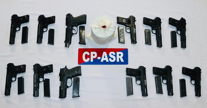 Amritsar News: ਕਮਿਸ਼ਨਰੇਟ ਪੁਲਿਸ ਅੰਮ੍ਰਿਤਸਰ ਵੱਲੋਂ ਇੱਕ ਵੱਡੀ ਸਫਲਤਾ ਹਾਸਲ ਕਰਦੇ ਹੋਏ, ਪਾਕਿਸਤਾਨ ਨਾਲ ਜੁੜੇ ਇੱਕ ਸਰਹੱਦ ਪਾਰ ਹਥਿਆਰਾਂ ਅਤੇ ਨਸ਼ੀਲੇ ਪਦਾਰਥਾਂ ਦੀ ਤਸਕਰੀ ਦੇ ਨੈੱਟਵਰਕ ਦਾ ਪਰਦਾਫਾਸ਼ ਕਰਕੇ ਪੰਜ ਕਾਰਕੁਨਾਂ ਨੂੰ ਗ੍ਰਿਫ਼ਤਾਰ ਕੀਤਾ ਗਿਆ ਅਤੇ 12 ਪਿਸਤੌਲ (.30 ਬੋਰ) ਅਤੇ 1.5 ਕਿਲੋਗ੍ਰਾਮ ਹੈਰੋਇਨ ਬਰਾਮਦ ਕੀਤੀ ਗਈ ਹੈ।ਮੁੱਢਲੀ ਜਾਂਚ ਤੋਂ ਪਤਾ ਲੱਗਿਆ ਹੈ ਕਿ ਗ੍ਰਿਫ਼ਤਾਰ ਕੀਤੇ ਗਏ ਮੁਲਜਮ ਜੋਬਨ ਸਿੰਘ ਅਤੇ ਜਸ਼ਨਪ੍ਰੀਤ ਸਿੰਘ ਸਮੇਤ ਪਾਕਿਸਤਾਨ-ਅਧਾਰਤ ਤਸਕਰਾਂ ਨਾਲ ਸਿੱਧੇ ਸੰਪਰਕ ਵਿੱਚ ਸਨ ਅਤੇ ਸੋਸ਼ਲ ਮੀਡੀਆ ਰਾਹੀਂ ਉਨ੍ਹਾਂ ਦੇ ਹੁਕਮਾਂ ‘ਤੇ ਹਥਿਆਰ ਤੇ ਨਸ਼ੀਲੇ ਪਦਾਰਥ ਪ੍ਰਾਪਤ ਕਰਨ ਤੇ ਪਹੁੰਚਾਉਣ ਦਾ ਕੰਮ ਕਰਦੇ ਸਨ।