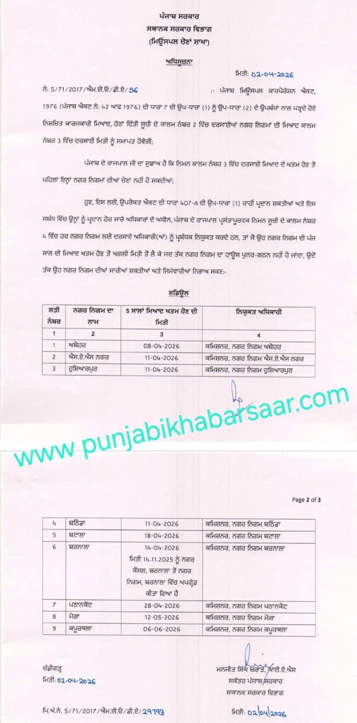 Bathinda News: Bathinda Municipal Corporation (ਬਠਿੰਡਾ ਨਗਰ ਨਿਗਮ) ਦੀ ਮਿਆਦ ਆਗਾਮੀ 11 ਅਪ੍ਰੈਲ 2026 ਨੂੰ ਖ਼ਤਮ ਹੋਣ ਜਾ ਰਹੀ ਹੈ। ਪੰਜਾਬ ਸਰਕਾਰ ਵੱਲੋਂ ਬੀਤੀ ਸ਼ਾਮ ਇਸ ਸਬੰਧੀ ਨੋਟੀਫਿਕੇਸ਼ਨ ਜਾਰੀ ਕਰ ਦਿੱਤਾ ਗਿਆ ਹੈ ਤੇ 12 ਅਪ੍ਰੈਲ ਤੋਂ ਨਗਰ ਨਿਗਮ ਦੇ ਕਮਿਸ਼ਨਰ ਬਤੌਰ ਪ੍ਰਸ਼ਾਸਕ ਇਸਦਾ ਕਾਰਜ਼ਕਾਰ ਸੰਭਾਲ ਲੈਣਗੇ। ਮੌਜੂਦਾ ਹਾਊਸ ਦੀ ਅੱਜ ਆਖ਼ਰੀ ਮੀਟਿੰਗ ਵੀ ਹੋਈ, ਜਿਸ ਵਿਚ ਸ਼ਹਿਰ ਦੇ ਵਿਕਾਸ ਕੰਮਾਂ ਸਮੇਤ ਹੋਰ ਮਹੱਤਵਪੂਰਨ ਮਤਿਆ ਨੂੰ ਪਾਸ ਕੀਤਾ ਗਿਆ।