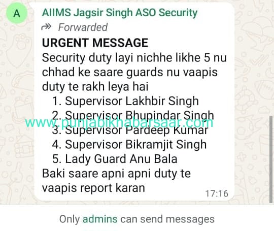 Bathinda News: Bathinda AIIMS ‘ਚ ਨਵੀਂ ਆਈ ਸਕਿਊਰਟੀ ਕੰਪਨੀ (ਭਲਿੰਦਰ ਸਿੰਘ ਬਰਾੜ ਸਕਿਊਰਟੀ ਪ੍ਰਾਈਵੇਟ ਲਿਮਟਿਡ) ਵੱਲੋਂ ਇੱਕੋ ਝਟਕੇ ‘ਚ ਕੱਢੇ ਦਰਜ਼ਨਾਂ ਸਕਿਊਰਟੀ ਮੁਲਾਜ਼ਮਾਂ ਦਾ ਮਾਮਲਾ ਭਖਦਾ ਜਾ ਰਿਹਾ। ਹਾਲਾਂਕਿ ਕੰਪਨੀ ਦੇ ਇਸ ਫੈਸਲੇ ਤੋਂ ਭੜਕੇ ਸਕਿਊਰਟੀ ਮੁਲਜਮਾਂ ਵੱਲੋਂ ਏਮਜ਼ ਦੇ ਮੁੱਖ ਗੇਟ ਅੱਗੇ ਧਰਨਾ ਸ਼ੁਰੂ ਕਰਨ ਤੋਂ ਬਾਅਦ ਕੰਪਨੀ ਵੱਲੋਂ ਇੰਨ੍ਹਾਂ ਹਟਾਏ ਗਏ ਕਰਮਚਾਰੀਆਂ ਨੂੰ ਮੁੜ ਡਿਉਟੀ ‘ਤੇ ਹਾਜ਼ਰ ਹੋਣ ਦਾ ਸੱਦਾ ਵੀ ਦਿੱਤਾ ਗਿਆ ਪ੍ਰੰਤੂ ਇਸਦੇ ਵਿਚ ਚਾਰ ਸੁਪਰਵਾਈਜ਼ਰਾਂ ਅਤੇ ਇੱਕ ਮਹਿਲਾ ਗਾਰਡ ਨੂੰ ਵਾਪਸ ਲੈਣ ਤੋਂ ਇੰਨਕਾਰ ਕਰ ਦਿੱਤਾ ਗਿਆ।