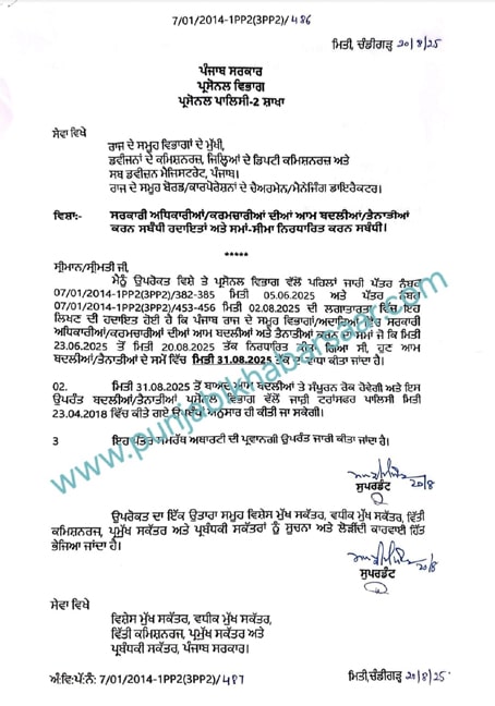 Chandigarh News: transfer & posting; ਪੰਜਾਬ ਸਰਕਾਰ ਵੱਲੋਂ ਆਮ ਬਦਲੀਆਂ ਦੀ ਮਿਤੀ ‘ਚ ਮੁੜ ਵਾਧਾ ਕਰ ਦਿੱਤਾ ਹੈ। ਇਹ ਵਾਧਾ ਤੀਜ਼ੀ ਵਾਰ ਹੋਇਆ ਹੈ, ਜਿਸਦੇ ਵਿਚ ਹੁਣ ਸਰਕਾਰੀ ਬਦਲੀਆਂ ਹੋ ਸਕਣਗੀਆਂ।